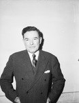 Wilson S. Fowler, of the New York City, New York, is the vice-president in charge of Western Union commercial activities. He attended a luncheon at the Fort Worth Club and discussed the post-war industry. The telegram operator doesn't see the industry slowing down. Mr. Fowler is standing against a wall wearing a double breasted suit with a handkerchief in the pocket.