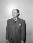Charles Kerr of Handley, Texas, announced that he would be a candidate for commissioner of Precinct 2 in the Democratic Primary. Mr. Kerr has been a road contractor in Tarrant County for twenty-two years. He is married and is a member of the Masonic Lodge. The current commissioner of Precinct 2 is Joe Thannisch. Mr. Kerr is standing against a wall, wearing a three piece suit with a pocket square.