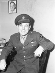 First Sergeant Sam K. Smith has been an Army man for thirteen years. After seven months of service in Northern Ireland and England, he is back home in Fort Worth, Texas. He is visiting his wife, the former Betty Tomlin. Sergeant Smith is sitting at a desk, dressed in his military uniform. There is a man's photograph hanging on the back wall.