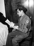 Sgt. Manny Ortega of Biggs Field reads orders covering his participation in the Chicago Golden Gloves. Published in Fort Worth Star-Telegram February 24, 1944.