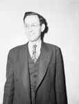 Joe Spurlock, to join armed forces. Mr. Spurlock - a member of the law firm Rogers, Spurlock, and Love - received orders to report for induction into the Army in March. He is a father of four and has practiced law in Fort Worth for eleven years. Mr. Spurlock was turned down on several attempts to enlist before finally being accepted. Due to hid faulty vision he was accepted for limited service. Mr. Spurlock is wearing a three-piece suit and eyeglasses.