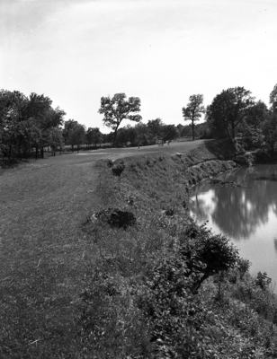 Image shows Colonial Hills Golf course and club house. On the right is a body of water.