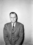 Finney Curran is preparing to leave for the Marine Corps. Mr. Curran spent fifteen years on the editorial staff of the Star-Telegram which he joined shortly after graduating from North Side High School. He has a wife and a son, John Michael. Mr. Curran is wearing a three-piece tweed suit and leaning against a wall.