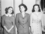 Paschal girls who saw Sinatra movie. Left to right, Gene Griffin, Pat Benoit and Jane Carvey. A private screening of Frank Sinatra's debut picture "Higher and Higher" was staged in Fort Worth. Seven girls from Paschal High were in attendance (three pictured). Miss Griffin is wearing a sweater and skirt. Miss Benoit is dressed in a blazer and skirt. Miss Carvey is wearing a light colored button-up dress.