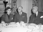 A. A. Lund, center, and Dr. and Mrs. Edwin J. Cohn sitting at a dinner table at the Fort Worth Club. Image appeared in Star-Telegram Morning Edition March 21, 1944.