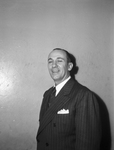 Virgil T. Smith, Decatur Illinois, pastor evangelist standing against a wall in a suit. Smith is conducting a revival at Rosen Heights Assembly of God Church, 2713 Azle. Image appeared in the Star-Telegram Evening Edition March 25, 1944.