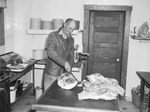 Tableware; McLeroy, Jim; Meat cutting; Butcher blocks; meat; Pork; Red Cross War Fund; Kitchens