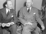 Harry H. Woodring, right, of Kansas, and Rice M. Tilley, Fort Worth attorney. Harry H. Woodring and Rice M. Tilley sitting in chairs conversing. Harry H. Woodring, former secretary of war and governor of Kansas, was in Fort Worth Wednesday in the interest of the American Democratic National Party, of which he is chairman. He is shown conferring with Rice M. Tilley, Fort Worth attorney. Image appeared in Star-Telegram Evening Edition, March 22, 1944.