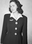 Mrs. Harry M. Robinson, the former Miss Dorothy Weir, daughter of Mr. and Mrs. H.V. Weir married Corporal Harry Robinson Saturday at Connell Baptist Church. Mrs. Harry M. Robinson is wearing a dress with flower printed buttons on it standing against a wall. Image appeared in the Star-Telegram Sunday Morning Edition, March 26, 1944.
