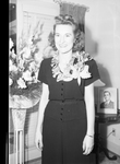 Mrs. Homer Lee Baughman Junior, the former Miss Louise Reynolds. Mrs. Homer Lee Baughman Junior wearing a dress with a flower pinned at the collar. Image appeared in Star-Telegram Evening Edition, March 27, 1944.