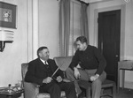 Lieutenant Colonel Rodney Ross Wilder, right, and his father, L. A. Wilder of the Texas Liquor Control Board. He's bombed the Axis in the Atlantic and the Pacific and what does he talk about when he's with his dad? Fishing.