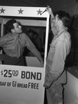 War bonds & funds; Painting; Coveralls; Military uniforms; Military personnel; United States. Army; Exhibit booths; Eichenbaum, Harold (Pvt.); Ferguson, Ralph E. (Pfc.); Camp Clairborne; Fort Sam Houston; Will Rogers Memorial Coliseum