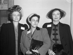 Mrs. Merrill Joy of Arlington, and Mrs. E.M. McBride of Olney, and Mrs. T.W. Smith of Fort Worth. Mrs. Merrill Joy, Mrs. E.M. McBride, Mrs. T.W. Smith standing next to each other against a wall.