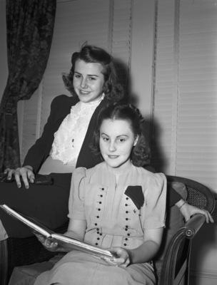 Miss Betty Echols, right, and Miss Blanche Patterson, left, graduate of Paschal High School. They sit next to each other. The one on the right holds a book. Published on May 19, 1940.