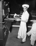 Ovens; Aprons; Warren, H. J. (Sgt.); Baking; Bread; United States. Army; Military personnel