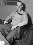Lieutenant Colonel Sid R. Williamson is sitting, relaxed on an office desk chair. He is wearing his uniform and USMC jacket and has a lit cigarette, with cigarette holder, in right hand. There is a ring on his left ring finger. Published in the Fort Worth Star-Telegram, April 9, 1944.