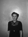 Mrs. O. G. McDaniel, 2549 Wabash, was recently elected president of University Garden Club.Mrs. McDaniel is wearing a short sleeved dress with a tie neckline. She wears a short hairstyle. Published in the Fort Worth Star-Telegram, April 18, 1944.