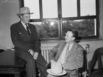 Left to right are Winfield Scott, sitting in a chair, and United States Marshal J. R. "Red" Wright, sitting on a desk. Both men are wearing suits. Mr. Wright is wearing a hat and Mr. Scott is holding a hat in his lap. Mr. Wright arrested Mr. Scott after searching for him for three days.