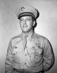 Sergeant Robert E. Jackson of San Marcos, Texas. Sgt. Jackson, a 36th Division infantryman, faced death many times during fighting in Italy. He has been awarded the Silver Star, Combat Infantryman's Badge, the Distinguished Unit Badge, and the Purple Heart. Sgt. Jackson is wearing is military uniform and is standing against a wall.