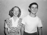 W. C. Stripling Junior High School. Play cast. Left to right, Marian Massengill and Ted Webb. A girl and a boy standing next to each other grinning.