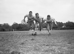 Paschal High School football linesmen charging across the field, left to right, Wilbur Milner, Gene Ratliff and L. C. Fortenberry, are in the spotlight at Fort Worth's high schools now that spring football practice is under way. Published in the Fort Worth Star-Telegram Morning Edition April 30, 1944.