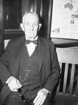 Mr. W. M. Jones, 88. Mr. Jones is sitting on a chair wearing a suit and bowtie while holding a pair of circular glasses on his lap. Behind him is a window and a poster with writing and a map on it. He has lived in Texas for 55 years and has six children. His children are Mrs. A. G. Hansen, Mrs. J. W. Martin, Mrs. M. E. Harper, Mr. J. D. Jones, Mr. Gordon H. Jones and Charles H. Jones.