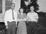 Left to right, Reverend Van Martin, Marian Hagan and Howard Sinclair. Two men and a woman standing in front of a house.