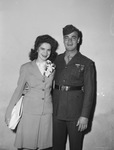 Micka, Edward (Sgt); Micka, Edward (Mrs.); Flora, Margaret Geraldine (Miss); Couples; Romances; Marriage; Eagle Mountain Lake (Tex.); Clothing & dress; Earrings; Corsages; Military personnel; Military uniforms; Military organizations; Purses