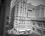 Fort Worth City Club exterior, 7th and Throckmorton Sts., car at traffic light, 05/09/1944