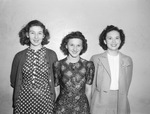 Mount Carmel Academy seniors present their class play, "It's a Ming." The play cast are (left to right) Patricia Keith, Dorothy Knopik and Alice Norman. Miss Keith, daughter of Mr. and Mrs. H. L. Keith, 1907 Homan, will play Miss Lucinda Lowrey in the play. She is wearing a polka dot dress, with buttons down the front, and a cardigan. Miss Knopik, daughter of Mrs. Mary Knopik, 3201 Clinton, will play Miss Jones. She is wearing a diamond pattern dress with short sleeves. Miss Norman, daughter of Mr. and Mrs. E. O. Norman, 2021 N Houston, will be Minerva Perkins. She is wearing a skirt with matching blazer. She has on a collarless blouse and a brooch on her lapel. They are all standing, next to each other. Published in Fort Worth Star-Telegram, morning edition, May 10, 1944.