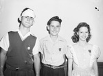 Daughters of the American Revolution awards and scholarships. Ted Webb, far left standing next to two other unidentified peers. Ted has a bandage on his head. All three students are wearing the same medal.
