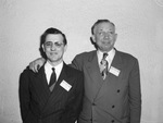 The Annual Restaurant Association Convention was held at the Hotel Texas. R. D. Shepard, Corpus Christi, Texas, left and unnamed man, right. Mr. Shepard is wearing eyeglasses, a pinstriped, double-breasted suit and name tag on his lapel. He has on a shirt and wide-striped shirt. They are standing next to each other. Published in Fort Worth Star-Telegram, morning edition, May 11, 1944.