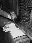 The Forest Park Zoo's baby sloth was born Saturday. He was named Eddie. He is looking at life from the hand of Zoo Director Julian Frazier. There is a radiator and papers underneath Eddie.