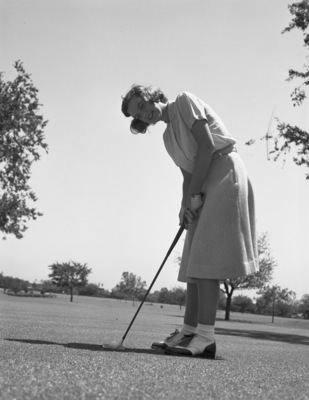 Women's Southern Golf Tournament. Mrs. Sam Israel Jr. of New Orleans in putting shot. Published on may 20, 1940.