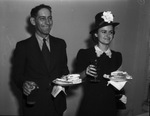 Christian Church Laymen's Movement in West Texas members include Mr. and Mrs. T. F. Ereckson, ready to join others at the picnic table. They are seen side by side holding their drinks and plate of food.