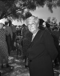 East Texas Hereford Association Tour. Mrs. Julia Bryan Young, Hamlin, seen looking back wearing a dress.
