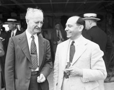 Southern Publishers Association convention at Shady Oak. Walter C. Johnson and Henry M. Davidson, Daytona Beach, Florida. They stand next to each other and talk. Published on May 23, 1940.