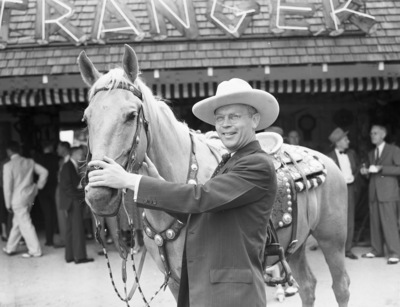 Southern Publishers Association convention at Shady Oak. James W. Brown Junior publisher of Editor and Publisher. He stand next to a horse and smile. Published on May 23, 1940.