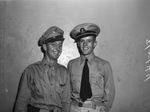 Midshipman Johnnie E. Monaghan Junior, left, who is attending the University of Texas Medical School in Galveston, and Lieutenant Robert Lee Monaghan, in P-47 school at Richmond, Virginia were home on leave at the same time visiting their parents, Mr. and Mrs. J. E. Monaghan. Both are graduated from Arlington Heights High School and attended the University of Texas. The brothers are pictured together in their uniforms. Published in the Fort Worth Star-Telegram evening edition, August 24, 1944.