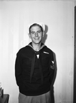 Clyde Elkins Kay, pharmacist second class, son of Mr. and Mrs. H. C. Kay, returned home to Fort Worth, Texas for a short leave after eight months in the Solomon Islands with the United States Navy. He is standing, smiling, wearing his military uniform. Clyde obtained his degree in pharmacy from the University of Texas. He took special malaria and epidemic control work in the Naval Hospital at Betheseda, Maryland. He will be reporting August 20 to the University of Pennsylvania for special naval study. Published in Fort Worth Star-Telegram morning edition, August 10, 1944.