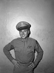 Lieutenant Charles S. Wolfe, B-24 pilot, has returned home after nine months' overseas for a visit with wife, the former Miss Margie Florine Gray and his mother, Mrs. Mary G. Wolfe. Lieutenant Wolfe completed 32 grueling, action-packed missions against the Germans. He holds the Distinguished Flying Cross and Air Medals with three clusters. Prior to entering service in January 1942, he was employed in the mailing department of the Star-Telegram. He is a graduate of Paschal High School. He is standing in his military uniform with both hands resting on his waist. Published in the Fort Worth Star-Telegram evening edition, August 16, 1944.