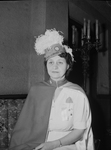 Mrs. Blanche Amtsbuechler of Dallas, Texas was elected Le Chapeau Departmental of the Eight and Forty veterans association, women's auxiliary, at a conference at the Blackstone Hotel. Mrs. Amtsbuechler is shown sitting down, wearing a dress and a hat. Published in the Fort Worth Star-Telegram morning edition, August 16, 1944.