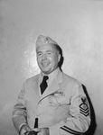 Chief Petty Officer Ronald A. Rhodes, Pharmacist's Mate, United States Navy Reserve, is dressed in his military uniform. Given medical discharge, he resumes work as artist with Star-Telegram. He had been with the Star-Telegram five years when he left for duty. He entered the service in September 1942 and wears two bronze stars for participation in two major battles. He had been in service before the war, from 1929 to 1931 with the Marine Medical Corps in China. Published on August 17, 1944.
