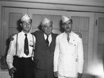 Four service records are represented by these veterans who were picked among new officers for the Department of Texas, American Legion. Left to right, John S. Davis of Kilgore, Texas, World War II veteran, who was named sergeant-at-arms; Henry Love of Fort Worth, Texas, new department commander; and C. C. Joplin of La Grange, Texas, new judge advocate, who served in World Wars I and II. Mr. Love and Mr. Joplin are wearing suits and Mr. Davis is wearing a collared shirt, trousers, suspenders and eyeglasses. All three men are wearing hats.