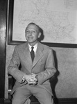 Harry H. Porter, former independent oil operator of Fort Worth and only relieved from duty as captain in the Army, has been elected vice president in charge of land department of the Southland Royalty Company. Commissioned as a captain, he spent 22 months in the Army. He was formerly with the States Oil Corporation of Eastland, serving as vice president before joining the International Petroleum Corporation. He wears a coat and tie and sits on a chair. There is a framed map on the wall behind him. Published in the Fort Worth Star-Telegram morning edition, August 27, 1944.