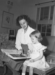 Mrs. Eddie Compton and daughter, Joan, after a stay in Colorado visited parents, Mr. and Mrs. E. L. Orr. Mrs. They will join Lieutenant Colonel Compton in San Antonio Monday. In this picture, Mrs. Compton and her daughter sit side by side on a coffee table while they look at pictures in a book. Published in Fort Worth Star-Telegram, morning edition, September 3, 1944.
