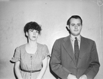Artists Mr. and Mrs. Dickson Reeder. She is Flora Blanc in artists' circles, formerly from New York but came to Fort Worth in 1939 soon after she married Dickson Reeder. She has had instruction received in Paris. Mr. Reeder is a native of Fort Worth. He studied art in New York City and also in Paris. They are featured in the "Six Texas Artists" show scheduled to open in the Wehye Gallery in New York. The couple are standing next to each other against a blank wall behind them. Published in the Fort Worth Star-Telegram morning edition, September 10, 1944.