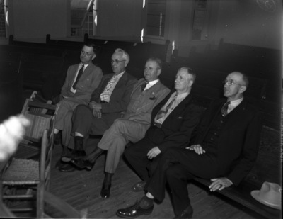 Christian Church Laymen's Movement in West Texas members (left to right) O. B. West, Cisco, Texas; W. G. McKinney, Coleman, Texas; Jack Carothers, Ranger, Texas; E. E. Wood, Eastland, Texas and W. M. Deans, Brady, Texas, representative members of the movements committee seen listening to a talk before the principal evening meeting.