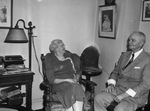 Newton H. Lassiter, 84 and wife, shown here, in a sitting room listening to war news on the radio. Mr. Lassiter is a retired Fort Worth attorney, banker and insurance company head. They have given up their home at 1008 Penn, for an apartment of the Hotel Texas, so their house can be used by the Girls Service League. Mr. Lassiter was born in 1860 in Lexington Tennessee. As a young lawyer, he practice in Fort Worth where he married Miss Elizabeth Davis in 1890. She is the only daughter of W. H. Davis, an early day Fort Worth businessman. A successful career followed him including serving as president and chairman of the board of the State Reserve Life Insurance Company. They have 2 daughters and 6 grandchildren, 2 of which are in the service; Captain Lassiter Thompson, fighter plane pilot; and Private first class Donald Thompson of Camp Pinedale, California. The Lassiters celebrated their golden wedding anniversary on July 13, 1940. Published in the Fort Worth Star-Telegram morning edition, September 10, 1944.