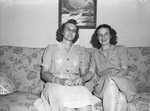 Miss Ruth Schnicke, left, of Indianapolis , recently visited her friend, Mrs. W. B. Hun,right, at her home, 1715 Boyce, in Ft. Worth . Miss Schnicke was entertained at a series of informal parties. The ladies are shown sitting on a sofa, smiling and holding hands. Published Fort Worth Star-Telegram Evening Edition September 19, 1944.